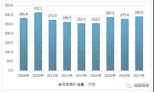 2009-2017年我國鎳礦儲量統(tǒng)計(jì)
