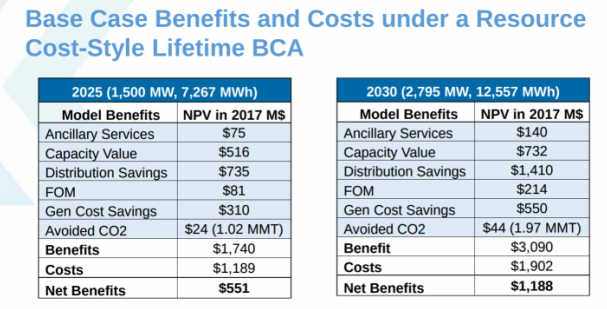 該路線圖包括到2025年部署1500兆瓦時(shí)的儲(chǔ)能目標(biāo),以及到2030年部署2795兆瓦時(shí)的儲(chǔ)能目標(biāo)的成本預(yù)測。它使用了Acelerex公司的一項(xiàng)分析,估計(jì)2030年的儲(chǔ)能部署將通過通過計(jì)算從緩解電網(wǎng)擁塞、配電節(jié)約、避免二氧化碳排放的成本和其他收益為納稅人帶來超過11億美元的凈收益。