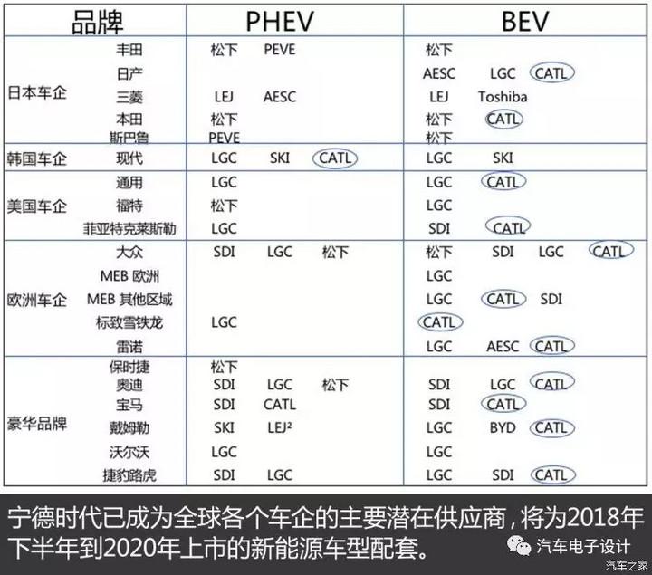 隨著補貼持續(xù)下降,CATL與國外的松下、三星SDI和LG化學(xué)在PHEV和EV兩個方面作為競爭對手比拼產(chǎn)品、價格和配套能力。