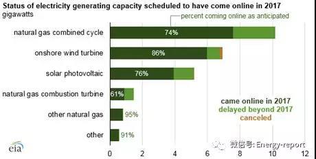 天然氣聯(lián)合循環(huán)發(fā)電廠的裝機(jī)容量在2017年計(jì)劃并網(wǎng)的裝機(jī)容量中占40%(10.1GW)。其中7.5GW在2017年年內(nèi)并網(wǎng),其余2.6GW推遲到今年并網(wǎng)。