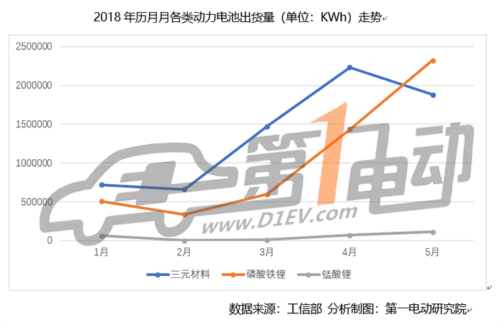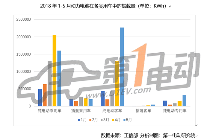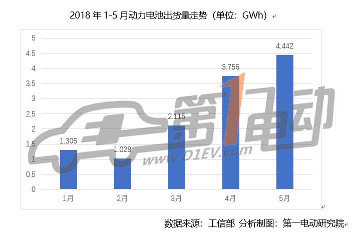根據(jù)第一電動(dòng)研究院的統(tǒng)計(jì)測(cè)算,2018年5月國(guó)內(nèi)新能源汽車市場(chǎng)動(dòng)力電池裝機(jī)量為4.442GWh,比上月增長(zhǎng)18.26%,同比增長(zhǎng)207.8%。