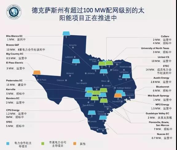 再次聚焦到德克薩斯州,在過去的3個(gè)月里,圣安東尼奧市政電力公司CPS已對(duì)5 MW裝機(jī)太陽能光伏項(xiàng)目進(jìn)行了招標(biāo),同時(shí)另外三家市政電力公司也為7 MW裝機(jī)的太陽能光伏項(xiàng)目發(fā)出了招標(biāo)公告。落基山研究所的ShineTM團(tuán)隊(duì)也召集了3家能源買家、2家合作社電力公司和一所位于市政電力公司服務(wù)范圍內(nèi)的大學(xué),為13.25 MW裝機(jī)太陽能和太陽能加蓄能項(xiàng)目發(fā)出了標(biāo)書。