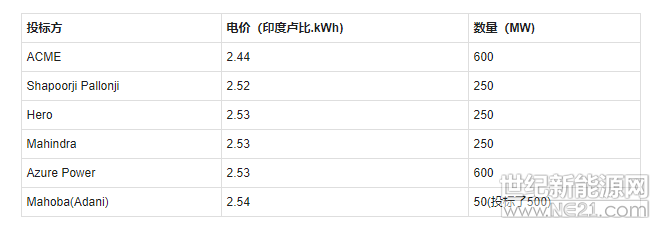 Adani集團(tuán)的Mahoba Solar公司投標(biāo)了500MW項目,但僅分得50MW。 ReNew Power和Fortum公司的報價分別為2.56盧比和2.76盧比,錯失項目。