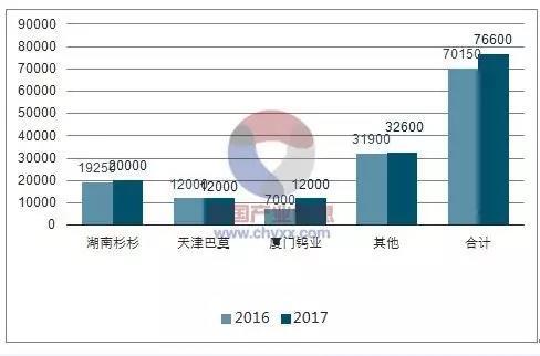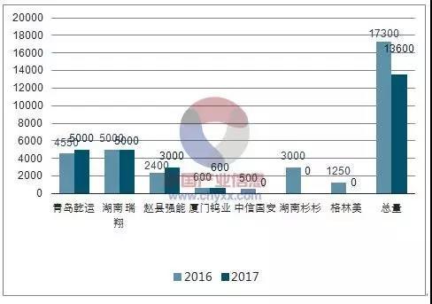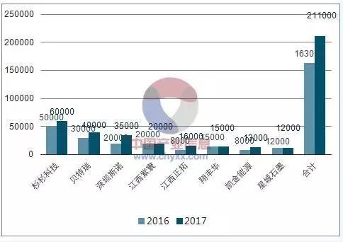 2016-2017年國(guó)內(nèi)主要LFP廠家產(chǎn)能統(tǒng)計(jì)(噸)