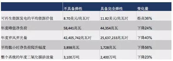 需求彈性不僅可以使需求更好地匹配波動(dòng)性的能源供應(yīng),還能夠以比僅依靠燃?xì)怆姀S綜合成本更低、碳排放更少的系統(tǒng)來(lái)平衡可再生能源并滿足峰值負(fù)荷需求。總體來(lái)看,在模擬系統(tǒng)中利用需求彈性能夠每年避免大約20億美元的發(fā)電成本,并減少1/5的二氧化碳排放。這一量級(jí)的彈性需求還能夠減少40%的可再生能源棄風(fēng)棄光,降低24%的凈負(fù)荷峰值(總負(fù)荷減去可再生發(fā)電),并減少56%的數(shù)小時(shí)負(fù)荷爬升(“鴨子曲線”)平均幅度。