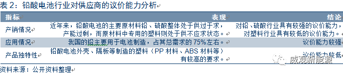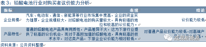 供應(yīng)商的議價(jià)能力:鉛酸蓄電池行業(yè)的上游包括鉛、硫酸、塑料等,鉛酸蓄電池行業(yè)對(duì)原材料的需求量大,鉛和硫酸行業(yè)整體呈現(xiàn)產(chǎn)能過(guò)剩,且電池制造是鉛的重要下游應(yīng)用領(lǐng)域,從而鉛酸蓄電池行業(yè)對(duì)鉛和硫酸具有較強(qiáng)的議價(jià)能力,而塑料供不應(yīng)求,且行業(yè)對(duì)塑料的特性有較高的要求,從而對(duì)塑料行業(yè)議價(jià)能力較低。