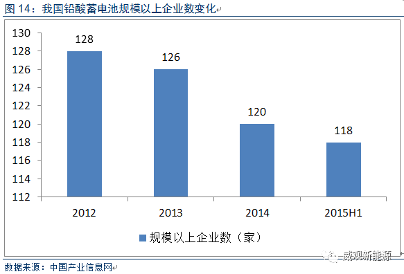 激烈的市場(chǎng)競(jìng)爭(zhēng)和環(huán)保政策壓力加速鉛酸電池行業(yè)整合、兼并重組的進(jìn)程,規(guī)模效應(yīng)將在行業(yè)優(yōu)勢(shì)企業(yè)中發(fā)揮作用。統(tǒng)計(jì)顯示,截止2012年國(guó)內(nèi)鉛酸蓄電池企業(yè)共2000多家,其中產(chǎn)值超過(guò)20億元的企業(yè)約有10家,超過(guò)1億元的企業(yè)約有260家,整個(gè)行業(yè)的集中度非常分散,遠(yuǎn)遠(yuǎn)低于美國(guó)、日本等國(guó)家。隨著環(huán)保部下發(fā)的《關(guān)于加強(qiáng)鉛蓄電池及再生鉛行業(yè)污染防治工作的通知》以及工信部出臺(tái)的《鉛酸電池行業(yè)準(zhǔn)入條件》的出臺(tái),未來(lái)行業(yè)整合的手段將會(huì)在產(chǎn)能限制、技術(shù)限制、選址限制等三個(gè)方面落實(shí),眾多中小企業(yè)將逐漸退出,整合轉(zhuǎn)型及技術(shù)升級(jí)將成為行業(yè)未來(lái)發(fā)展的主要趨勢(shì)。規(guī)模以上企業(yè)在逐年減少,目前,鉛酸蓄電池的廠商由2000多家減少至不到50家,整個(gè)行業(yè)集中度得到提高。