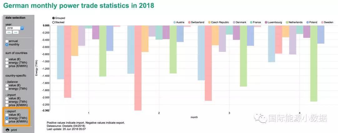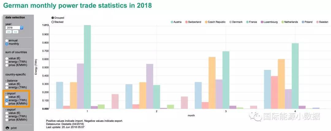 中國儲(chǔ)能網(wǎng)訊:2018年1月至4月,德國出口電力28.878 TWh,進(jìn)口電力8.759 TWh,凈出口20.119 TWh。