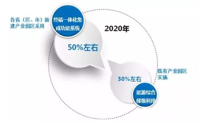 到2020年,各?。▍^(qū)、市)新建產(chǎn)業(yè)園區(qū)采用終端一體化集成供能系統(tǒng)的比例達(dá)到50%左右,既有產(chǎn)業(yè)園區(qū)實(shí)施能源綜合梯級(jí)利用改造的比例達(dá)到30%左右,具體見圖3。由于既有園區(qū)改造成本高,供水、供熱等行業(yè)存在壟斷難以介入,且改造比例相對(duì)較小,因此以新建產(chǎn)業(yè)園區(qū)作為重點(diǎn)布局。