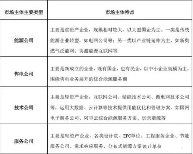 基于以上分析,最有可能成為綜合能源服務(wù)商的主力軍是能源公司和售電公司,而大多數(shù)能源公司主要以大型國企背景的公司為主具有先天優(yōu)勢(shì),另外像協(xié)鑫、新奧這樣有實(shí)力的民營企業(yè)不容小覷,另外最有可能崛起的就是售電公司。售電公司將以售電為切入點(diǎn),進(jìn)行業(yè)務(wù)拓展,而這部分公司存在大量的民營企業(yè),只要有好的商業(yè)模式就會(huì)迅速崛起。