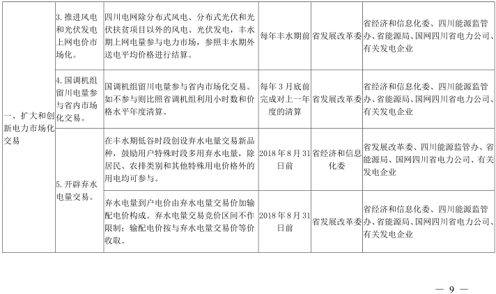 3.推進(jìn)風(fēng)電和光伏發(fā)電上網(wǎng)電價(jià)市場化。四川電網(wǎng)除分布式風(fēng)電、分布式光伏和光伏扶貧項(xiàng)目以外的風(fēng)電、光伏發(fā)電,豐水期上網(wǎng)電量參與電力市場,參照豐水期外送電平均價(jià)格進(jìn)行結(jié)算,產(chǎn)生的價(jià)差空間用于實(shí)施豐水期居民電能替代政策。