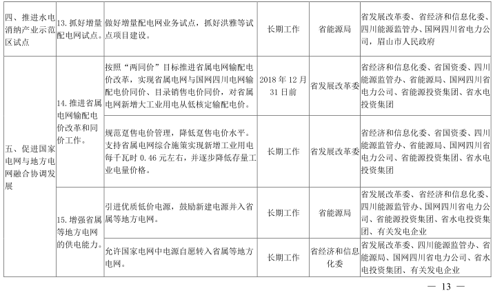 13.抓好增量配電網(wǎng)試點(diǎn)。做好增量配電網(wǎng)業(yè)務(wù)試點(diǎn),抓好洪雅等試點(diǎn)項(xiàng)目建設(shè)。
