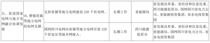 16.增強(qiáng)省屬等地方電網(wǎng)的電網(wǎng)支撐。支持省屬等地方電網(wǎng)建設(shè)220千伏電網(wǎng),國網(wǎng)四川電網(wǎng)向省屬等地方電網(wǎng)開放220千伏電壓等級(jí)并網(wǎng)接入。允許省屬等地方電網(wǎng)因地制宜與周邊省份電網(wǎng)開展網(wǎng)際間合作。