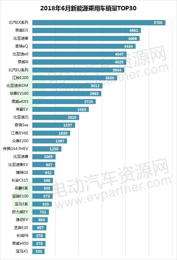 根據(jù)乘聯(lián)會(huì)數(shù)據(jù),經(jīng)電動(dòng)汽車(chē)資源網(wǎng)梳理,2018年6月,北汽新能源打造的新一代爆款車(chē)型北汽EX系列不負(fù)所望的奪得了新能源汽車(chē)銷(xiāo)量桂冠,銷(xiāo)售了5708臺(tái),不過(guò)這應(yīng)該也與前期未交付訂單,集中交付有關(guān),7月是否還能保持目前的銷(xiāo)量我們且拭目以待。奪得亞軍的是榮威Ei5,銷(xiāo)售了4661臺(tái),排在第三位的是比亞迪秦,銷(xiāo)售了4606臺(tái)。此外6月銷(xiāo)量超過(guò)三千臺(tái)的新能源乘用車(chē)還有奇瑞eQ(4434)、比亞迪e6(4047)、榮威i6(4028)、北汽EU系列(3944)、江鈴E200(3638)、比亞迪宋DM(3012)。