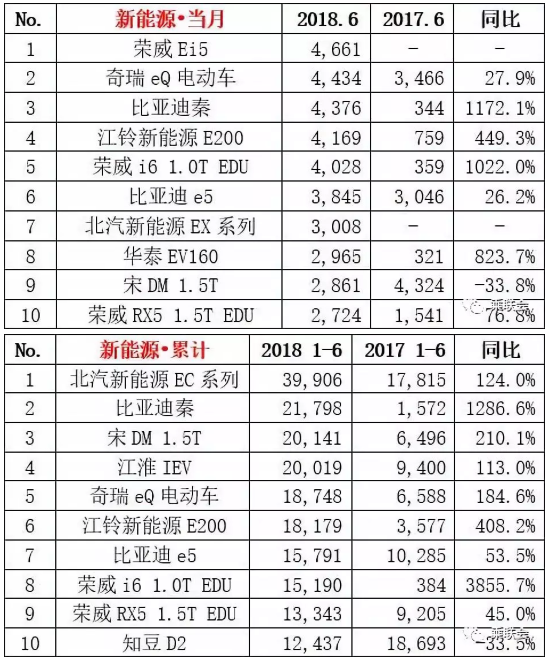 6月新能源車銷量榜:榮威新能源車型力壓比亞迪秦