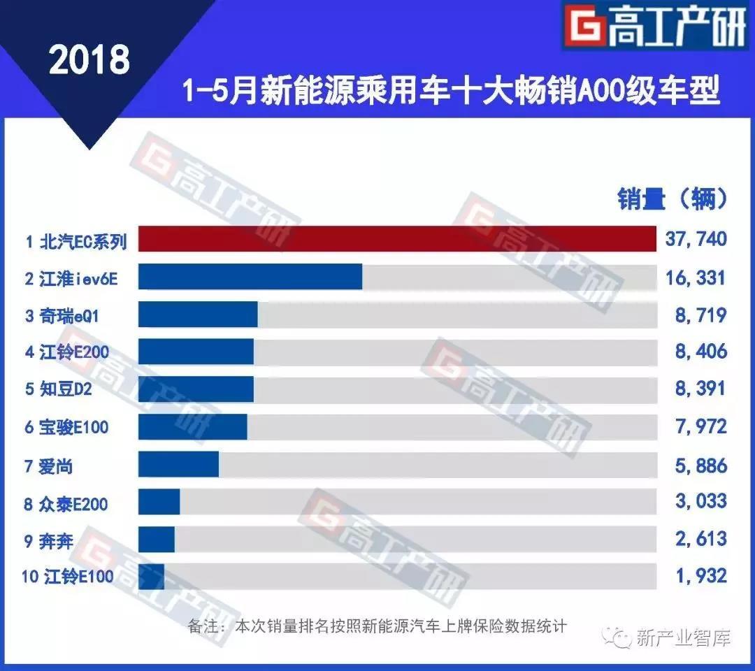 中國儲能網(wǎng)訊:根據(jù)高工產(chǎn)研電動車研究所(GGII)發(fā)布的《2018年1-5月新能源乘用車十大暢銷A00級車型》(詳見下圖):