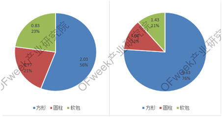 方形份額增長較快的原因是寧德時(shí)代和比亞迪的裝機(jī)量大增,兩家的市場份額占市場總裝機(jī)量的63.12%,占方形市場的82.98%。方形市場前五名的市場份額占據(jù)方形裝機(jī)量的95.27%,市場份額不斷集中。