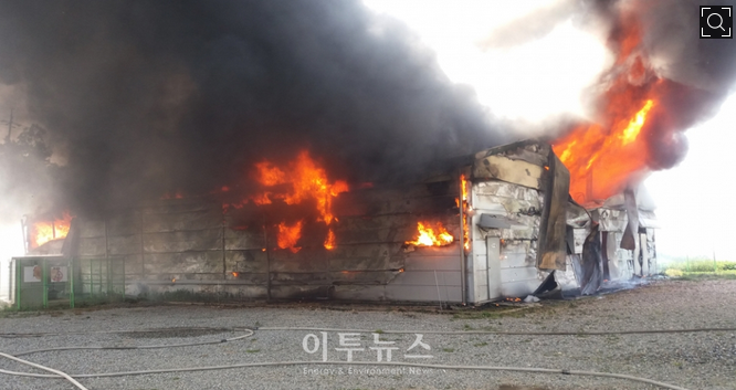 據(jù)了解,與此相關(guān)的合作公司表示,更換電池控制系統(tǒng)(BMS)后,準(zhǔn)備重新連接電池和PCS的瞬間響起爆炸聲,同時(shí)開始著火,燒毀了模塊和所有裝備。有段時(shí)間該火災(zāi)火焰高達(dá)幾十米高度,燒毀708㎡規(guī)模臨時(shí)建筑和3500多個(gè)電池,據(jù)消防署推算,經(jīng)濟(jì)損失達(dá)到46億韓元。投入20多輛消防車和100多名消防人員,歷經(jīng)3個(gè)多小時(shí)才成功撲滅。