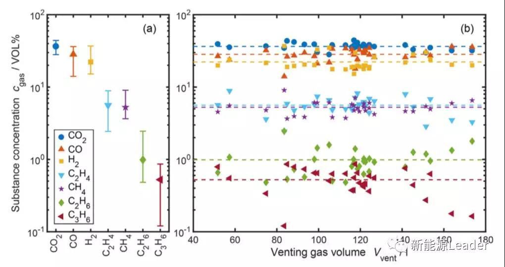 近日,德國(guó)戴姆勒公司的SaschaKoch等人針對(duì)不同容量的動(dòng)力電池在熱失控中釋放氣體的種類(lèi)、數(shù)量和影響因素進(jìn)行了詳細(xì)的分析,研究表明CO2、CO、H2、C2H4、CH4、C2H6和C3H6是鋰離子電池?zé)崾Э刂凶畛R?jiàn)的七種氣體,不同氣體的濃度與電池容量之間沒(méi)有相關(guān)性。電池的容量與熱失控釋放的氣體總量密切相關(guān),平均每Ah容量會(huì)釋放1.96L氣體。電池能量密度與熱失控觸發(fā)溫度有明顯的影響,電池體積能量密度每提高1Wh/L,電池?zé)崾Э赜|發(fā)溫度下降0.42℃。
