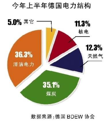 其中,風(fēng)能、太陽能、水能和生物質(zhì)能發(fā)電合計(jì)在德國電力組合中所占的比例達(dá)36.3%,而硬煤和褐煤發(fā)電的比例合計(jì)為35.1%。從具體數(shù)據(jù)上看,今年上半年,德國可再生能源總發(fā)電量達(dá)到1180億千瓦時(shí),而煤炭發(fā)電量為1140億千瓦時(shí)。