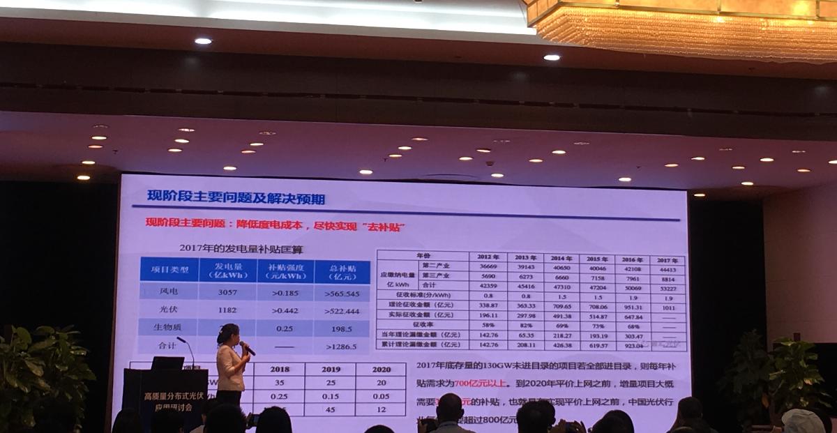 智匯光伏創(chuàng)始人王淑娟在演講中提到,如果2017年底存量130GW未進目錄的光伏項目全部進目錄,則每年補貼需求為700億元以上。到2020年平價上網(wǎng)到來之前,增量項目大概需要160億元的補貼。這樣算來,平價上網(wǎng)之前,中國光伏行業(yè)每年需要超800億元的補貼。