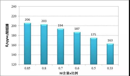 原來容量和鎳、鈷的總含量相關(guān),更確切的說,由于鈷的含量一般是變化比較少的通常是0.2或0.3,那么最直接相關(guān)的就是鎳的含量,由于鎳在三元材料里面的價態(tài)呈現(xiàn)+2和+3兩種價態(tài),當(dāng)有鋰離子脫出的時候過渡金屬鎳發(fā)生變價來達(dá)到荷電平衡。正是由于Ni的這種多價態(tài)表現(xiàn),它可以從+2變到+3,再由+3變到+4價,所以,鎳含量越高,能夠脫出的鋰離子也就越多。
