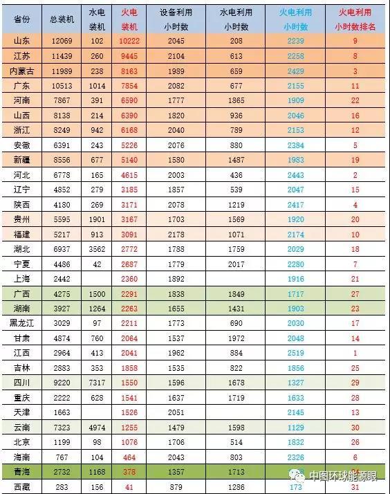 綜合各省火電裝機排名以及火電利用小時排名情況,做出以下判斷: