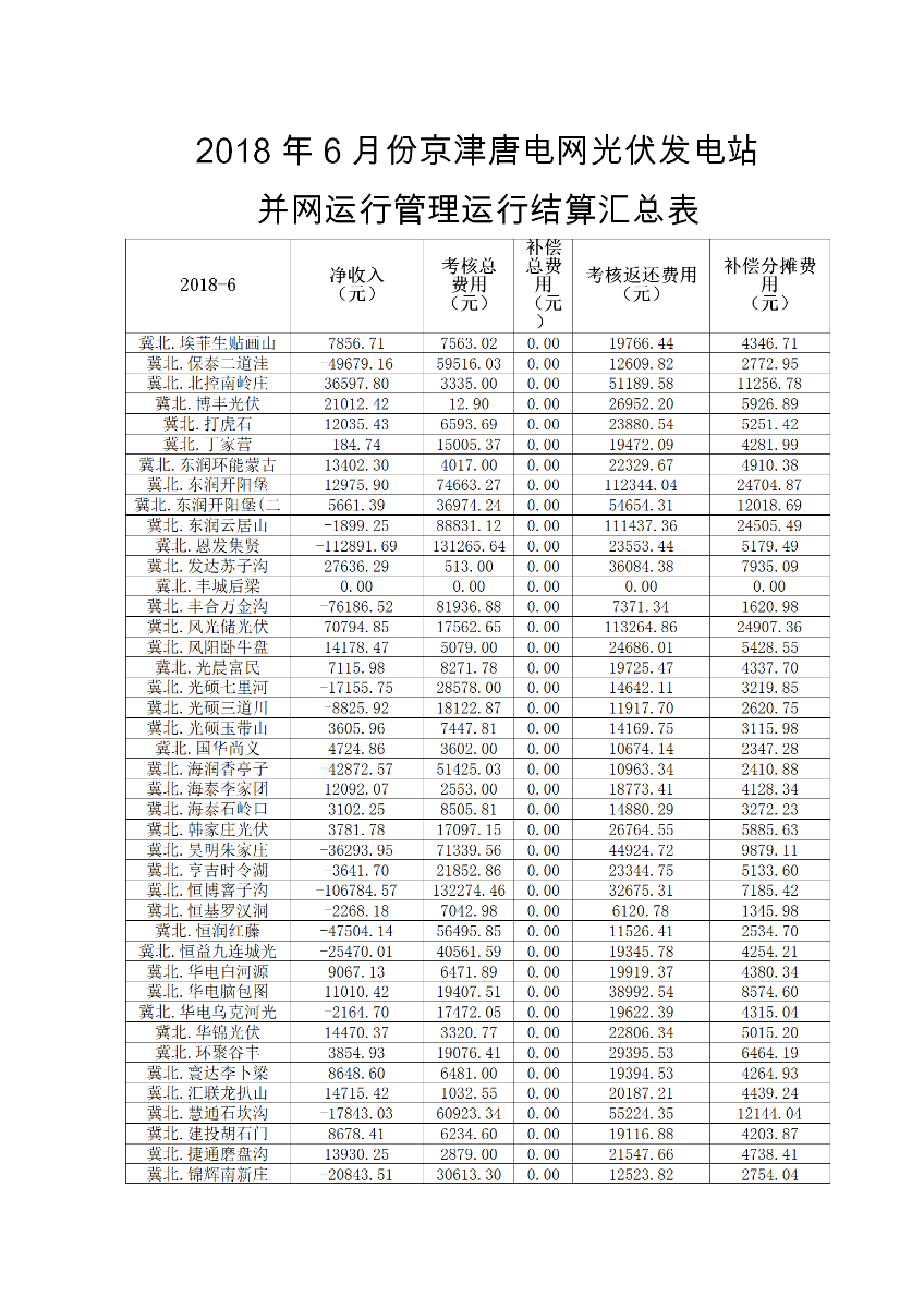 中國儲能網(wǎng)訊:日前,華北能監(jiān)局發(fā)布了2018年6月份京津唐電網(wǎng)111個光伏發(fā)電站并網(wǎng)運行管理運行結(jié)算匯總情況。