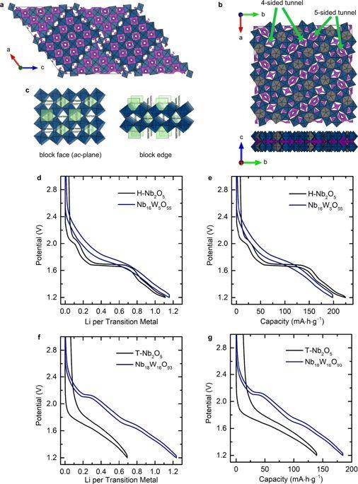 研究配圖 - 9:塊狀和青銅型三元鈮鎢氧化物的預(yù)期,及與二元鈮氧化物的電化學(xué)比較。