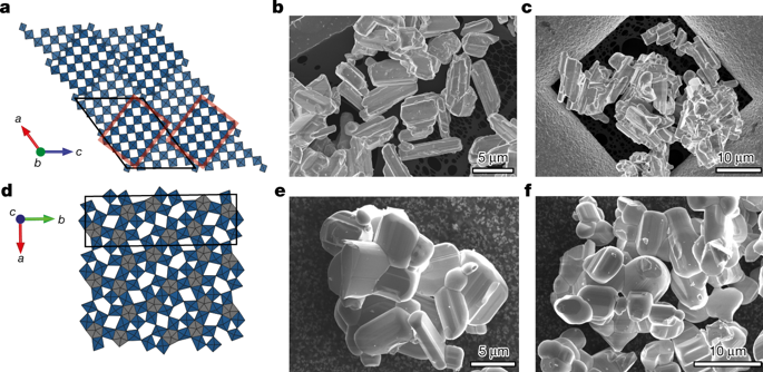 研究配圖 - 1:Nb16W5O55 和 Nb18W16O93 的晶體結(jié)構(gòu) / 粒子形態(tài)