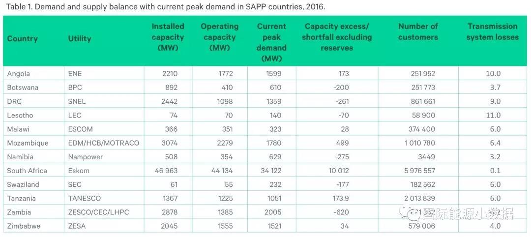 中國(guó)儲(chǔ)能網(wǎng)訊:根據(jù)斯德哥爾摩環(huán)境研究所(SEI)發(fā)布的一份報(bào)告,在南部非洲12個(gè)國(guó)家中,有6個(gè)嚴(yán)重缺電(見(jiàn)下表),而且輸電系統(tǒng)的線(xiàn)損也偏高。