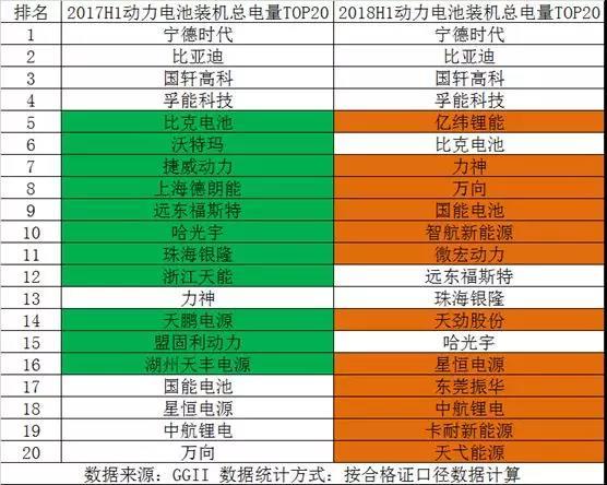 受補貼政策調整、上游原材料漲價、下游主機廠壓價等多重因素影響,2018上半年動力電池競爭格局較去年同期發(fā)生較大變化,主要體現(xiàn)在第5-20名企業(yè)排名的變化。