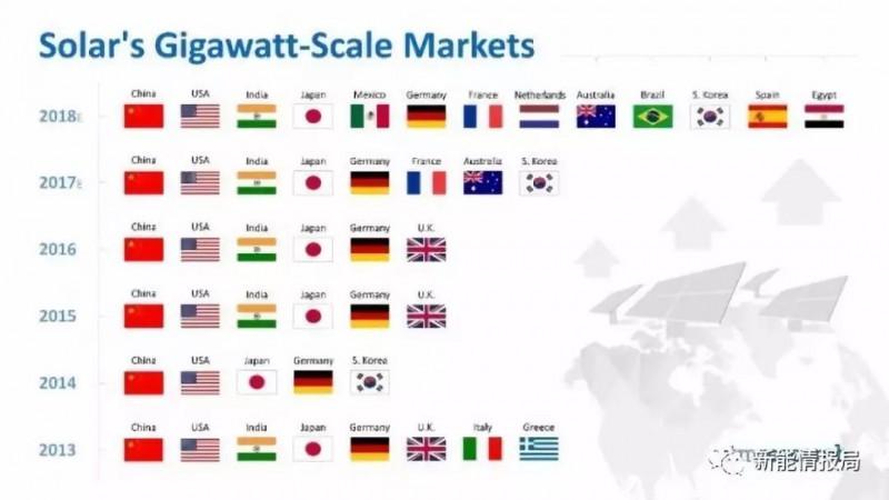 在此之前,研究機(jī)構(gòu)GTM曾經(jīng)發(fā)布了一份名為“全球太陽能需求監(jiān)測”的報(bào)告,當(dāng)時(shí)預(yù)測到2018年底,全球?qū)?huì)有13個(gè)國家的年光伏裝機(jī)量超過1GW。