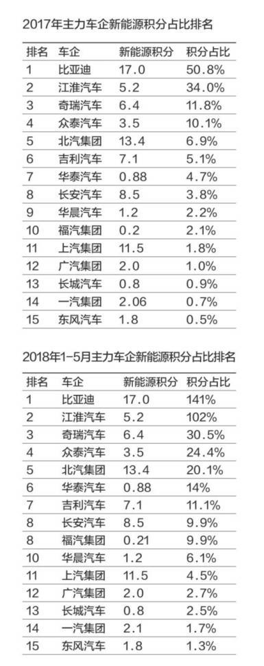 從過(guò)去兩年的新能源積分情況看,自主車(chē)企中無(wú)疑是新能源積分的大戶(hù)。據(jù)工信部公布的2017年數(shù)據(jù),前五家新能源正積分都超過(guò)10萬(wàn),其中比亞迪積分達(dá)到22.34萬(wàn)、北汽新能源達(dá)到21.85萬(wàn),而吉利汽車(chē)也達(dá)到14.4萬(wàn)。