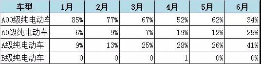 各級(jí)別純電動(dòng)汽車(chē)市場(chǎng)占比情況
