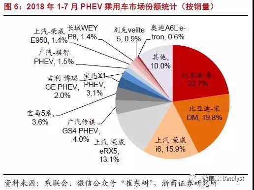 另據(jù)乘聯(lián)會的統(tǒng)計數(shù)據(jù),1-7月,比亞迪-秦、比亞迪-宋DM、榮威i6、榮威eRX5分別售出2.70萬輛、2.36萬輛、1.90萬輛、1.56萬輛,我們據(jù)此測算,這4款車型合計銷量為8.52萬輛,占PHEV乘用車總銷量7成以上,如圖6所示。