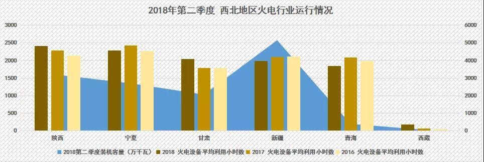 西北區(qū)域出現(xiàn)了大規(guī)模下滑趨勢,西北區(qū)域也是我國唯一火電設備平均利用小時數(shù)大面積下滑的地區(qū)。寧夏、新疆、青海則為2280小時、1983小時、1848小時,同比下滑140小時、116小時、233小時。僅陜西、甘肅小幅度增長,增幅為130小時、265小時,達到2417小時、2048小時。