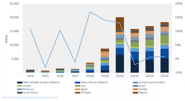 中國儲能網(wǎng)訊:據(jù)GTM Research的數(shù)據(jù)顯示,2018年中東和非洲地區(qū)的光伏需求有望增長170%。