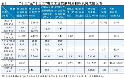 與《能源發(fā)展“十二五”規(guī)劃》相對(duì)照,全國發(fā)電裝機(jī)容量達(dá)到15.3億kW,超過規(guī)劃預(yù)期目標(biāo)。2015年,全國發(fā)電量5.74萬億千瓦時(shí),電力裝機(jī)規(guī)模和發(fā)電量穩(wěn)居世界第一。其中常規(guī)水電、風(fēng)電、太陽能發(fā)電、天然氣發(fā)電均超額完成規(guī)劃預(yù)期性目標(biāo)。煤電限控,略低于規(guī)劃預(yù)期性目標(biāo)。核電雖在建規(guī)模較大,但因施工工期較長,低于規(guī)劃預(yù)期性目標(biāo)。抽水蓄能裝機(jī)低于規(guī)劃預(yù)期性目標(biāo)。220千伏及以上輸電線路合計(jì)60.9萬公里,變電容量33.7億千伏安,電網(wǎng)規(guī)模穩(wěn)居世界首位?!拔麟姈|送”能力達(dá)到1.4億kW。非化石能源在一次能源消費(fèi)中的比重從2010年的9.4%提高到2015年的12%,超額完成了預(yù)定目標(biāo)。全面解決了無電人口用電問題。