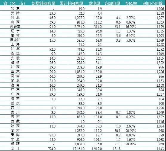 2018年上半年風(fēng)電并網(wǎng)情況