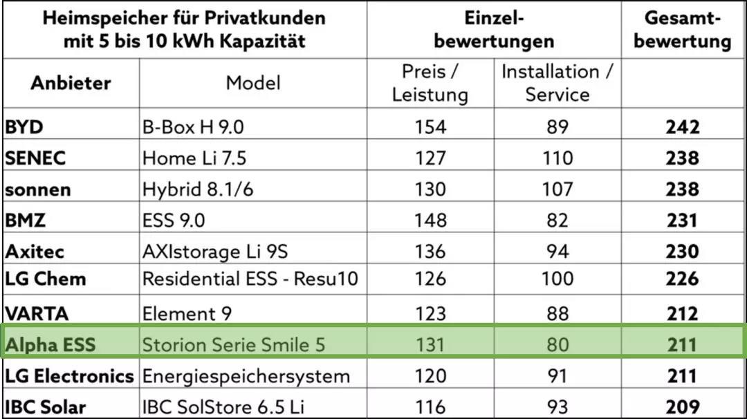中國(guó)儲(chǔ)能網(wǎng)訊:日前,德國(guó)權(quán)威調(diào)研機(jī)構(gòu)EuPD Research發(fā)布了2018年歐洲市場(chǎng)的十大儲(chǔ)能品牌排行榜,該排行榜是由德國(guó)清潔技術(shù)研究所與EuPD Research聯(lián)合組織調(diào)研所得。沃太能源(Alpha ESS)多款產(chǎn)品憑借出眾的品質(zhì)、良好的口碑從一眾儲(chǔ)能品牌中脫穎而出,位居多榜前十,Storion ECO-ES5更榮登5kWh榜首。