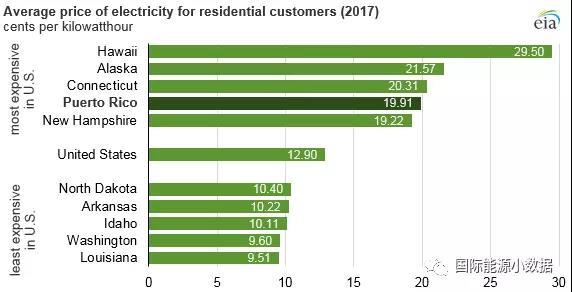 在美國各州中,夏威夷的居民電價最高,達到29.50美分/千瓦時(約人民幣2.0元/千瓦時);而居民電價最低的是路易斯安那州,為9.51美分/千瓦時(約合人民幣0.65元/千瓦時),與中國居民電價差不多。