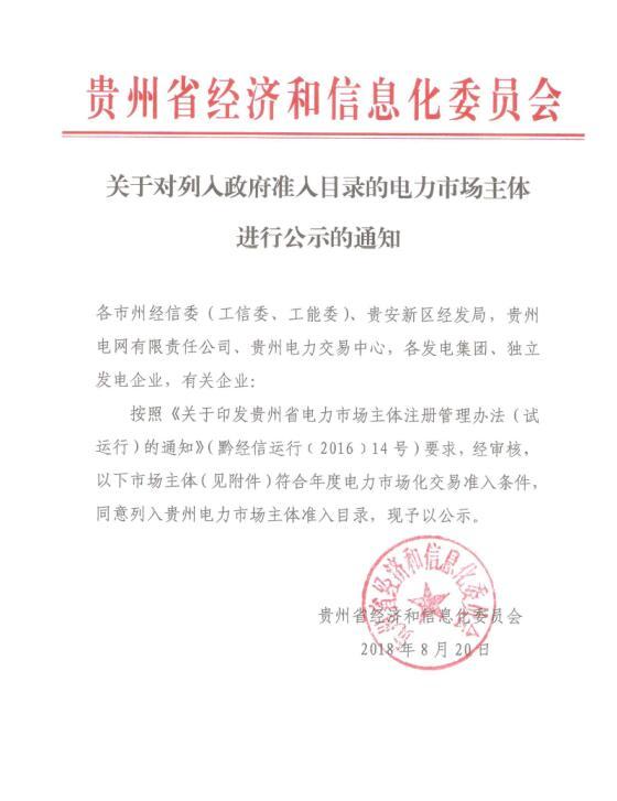 中國儲能網訊:貴州省經信委日前發(fā)布了 《關于對列入政府準入目錄的電力市場主體進行公示的通知》,同意將中電(普安)發(fā)電有限責任公司列入貴州電力市場主體準入目錄,其年發(fā)電量為70億千瓦時。