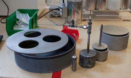 液態(tài)金屬公司已逐漸升級(jí)它的技術(shù)。這里顯示的是幾個(gè)電池,從一英寸寬的電池到公司最大的40厘米的電池(就是上面有三個(gè)孔的圓板)都有。在每個(gè)電池內(nèi),這兩種金屬都用作電極材料和鹽電解質(zhì)。金屬被加熱,直到它們?nèi)诨ü拭簯B(tài)金屬),然后自然分隔,形成三個(gè)不同層次,這是電池運(yùn)行所需的。