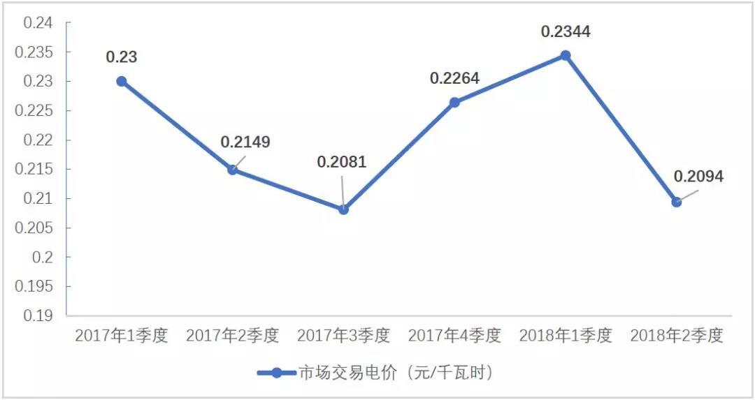 圖16 2017年-2018年2季度光伏市場交易電價走勢圖