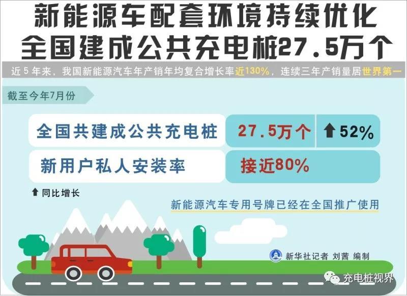 近年來,我國新能源車產(chǎn)業(yè)體系不斷完善,配套環(huán)境持續(xù)優(yōu)化。截至今年7月份,全國共建成公共充電樁27.5萬個,同比增長52%。