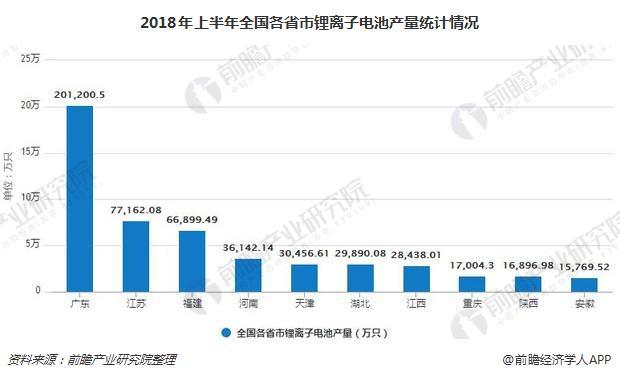 上半年全國各省市鋰離子電池產(chǎn)量統(tǒng)計分析
