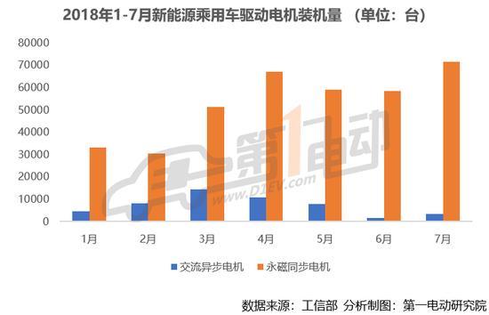 分車輛類型來看,新能源乘用車驅(qū)動電機(jī)7月裝機(jī)量74925臺,達(dá)到本年度最高峰,首次突破7萬臺,乘用車配套電機(jī)裝機(jī)量占總裝機(jī)量比重88%。前7月來看,交流異步電機(jī)裝機(jī)量逐漸走低,永磁同步電機(jī)平穩(wěn)增長。