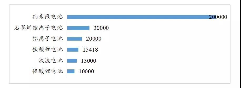 通過(guò)對(duì)收集的典型創(chuàng)新案例技術(shù)指標(biāo)梳理,可以發(fā)現(xiàn),目前一些產(chǎn)品的關(guān)鍵指標(biāo)已經(jīng)得到提升。在能量密度方面,鋁空氣電池能量密度達(dá)到780Wh/kg,鋰硫電池達(dá)到350Wh/kg,固態(tài)電池達(dá)到360Wh/kg;在充電倍率方面,典型創(chuàng)新性產(chǎn)品最高充電倍率已經(jīng)超過(guò)100C。在循環(huán)壽命方面,典型創(chuàng)新產(chǎn)品已經(jīng)能夠超過(guò)15000次。