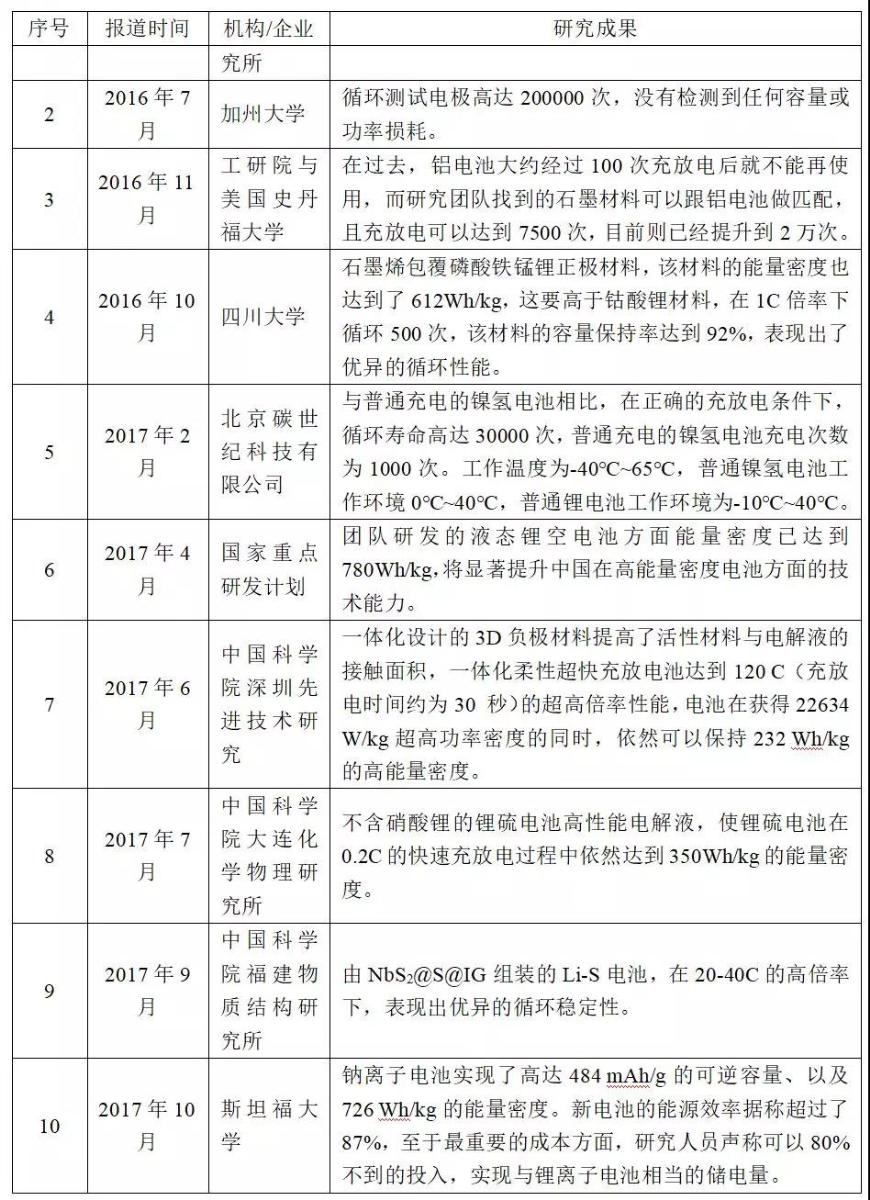 表5國(guó)內(nèi)外新型電池研發(fā)情況